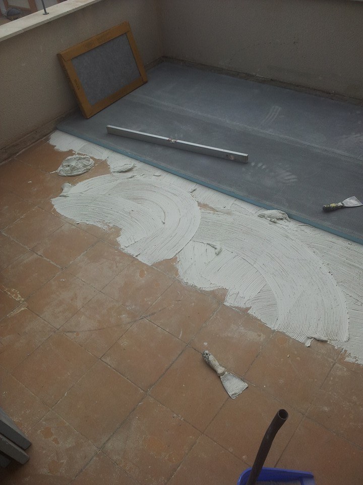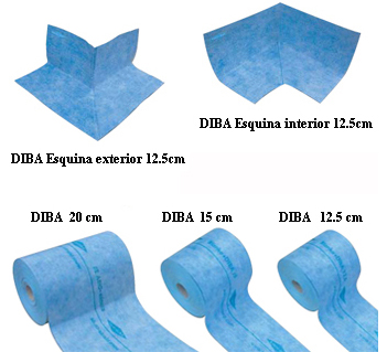 La lámina DIBA permite ser pegada encima de la superficie antigua sobre una superficies limpias y lisas, se puede pegar encima de baldosa, en cemento y también nos permite pegarle encima gres o cualquier tipo de acabado en piedra, si es un sitio no visible la podemos dejar enfoscada de cemento. Aguanta tensiones.